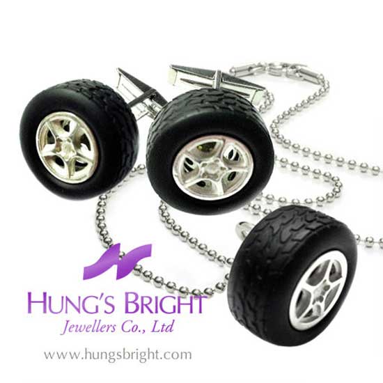 This silver jewelry set comes with a wheel design for a unique accent. A pair of cufflinks and a necklace are included. This exquisite silver jewelry set is an ideal addition to your fashion accessory collection.