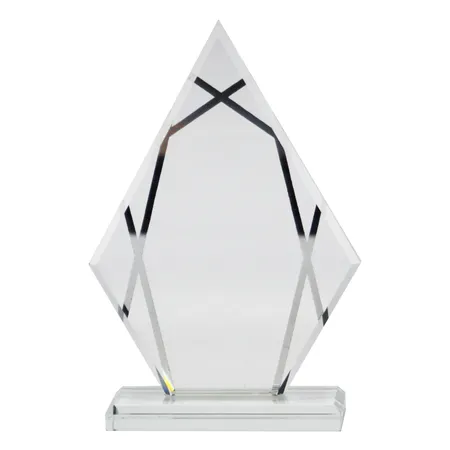 This trophy has a 10mm thick diamond-shaped piece of glass with silver lines on a rectangular base. It makes a wonderful present for occasions like birthdays, anniversaries, weddings, Mother's Day, Valentine's Day, Teachers' Day, etc. It is also ideal for rewarding customers, partners in business, or employees.