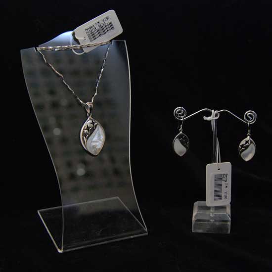 The oval-shaped necklace and earrings feature polished silver 925 construction. They showcase engraved cross-shaped patterns and shell setting. These necklace and earrings are great for complementing your everyday outfit.