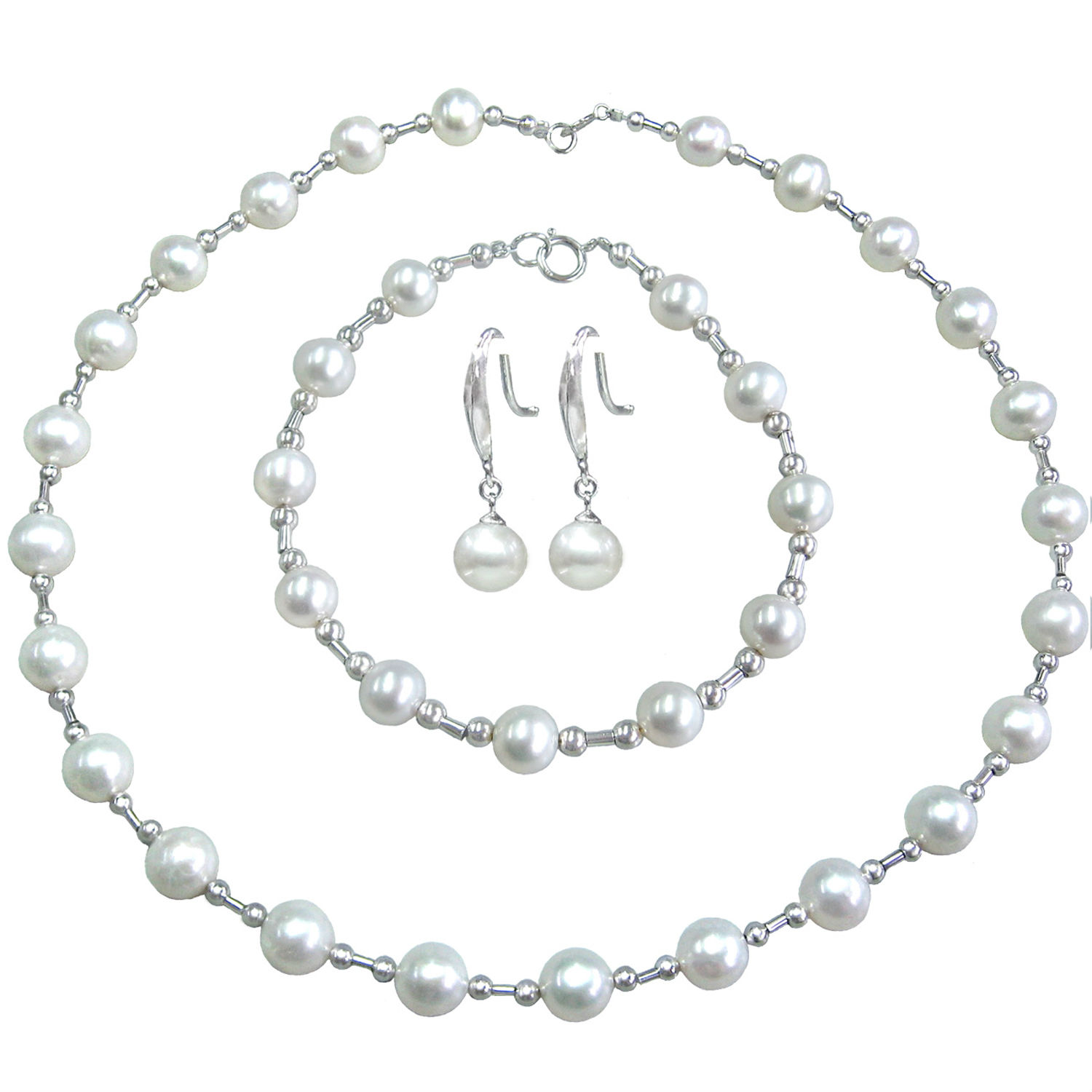 Our silver Pearl Jewellery Set come with necklace, earring and bracelet