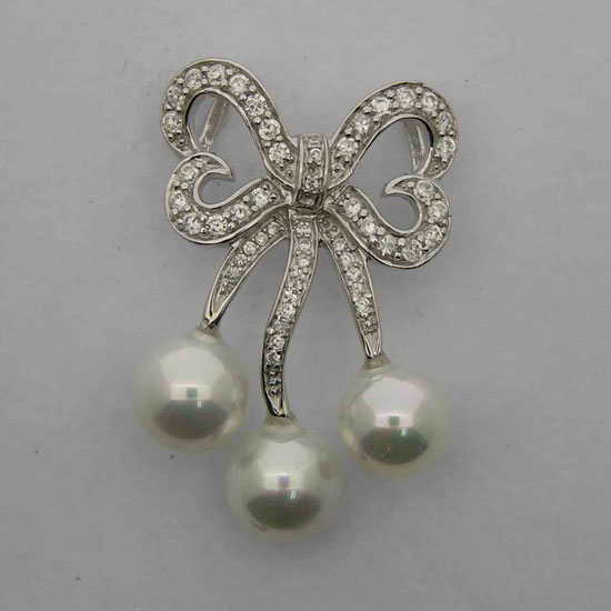 This elegant pendant features an elegant butterfly bow design accented with white CZ stones and synthetic pearls. Crafted of silver, the pendant has been plated with Rhodium for added durability and shine. Adorn your neck with this beautiful silver pendant.
