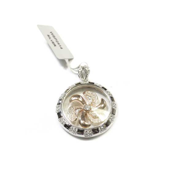 This trendy pendant is made of 925 silver in a round shape. It is skillfully crafted with a flowery embellishment in the center for a chic and elegant addition. The refined pendant is accented by sparkling white CZ stones in a deluxe and unique way.