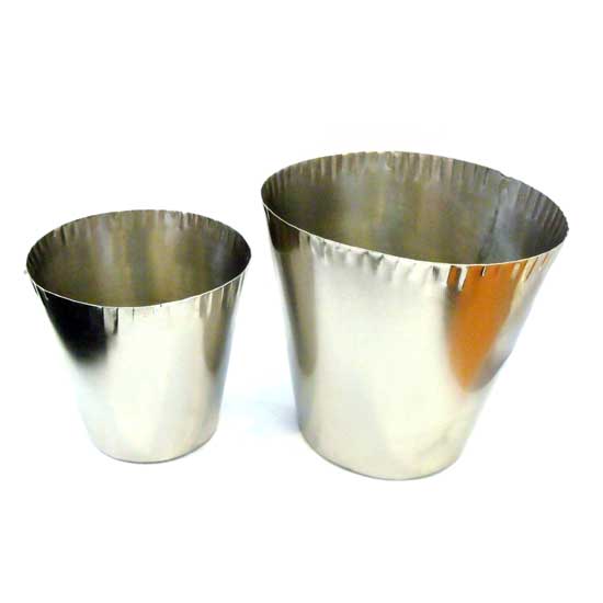 The featured planter comes in a simple shape with tiny decorations around the mouth. The shiny silvery surface looks great with any types of plants. This beautiful planter can also serve a candle holder.