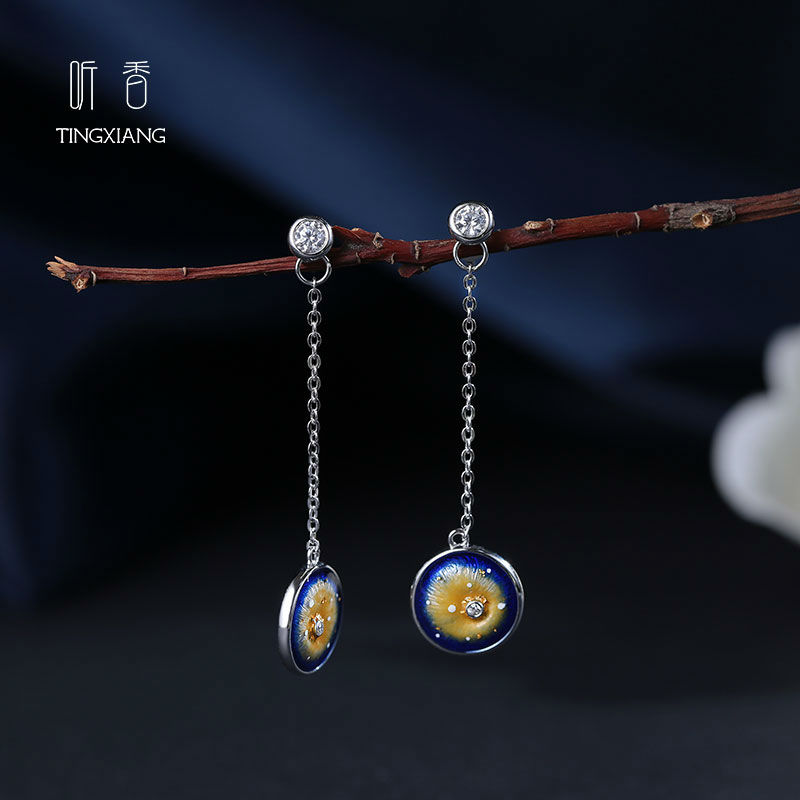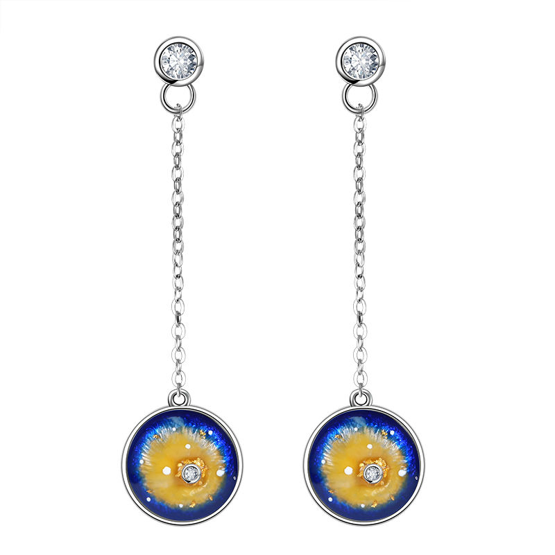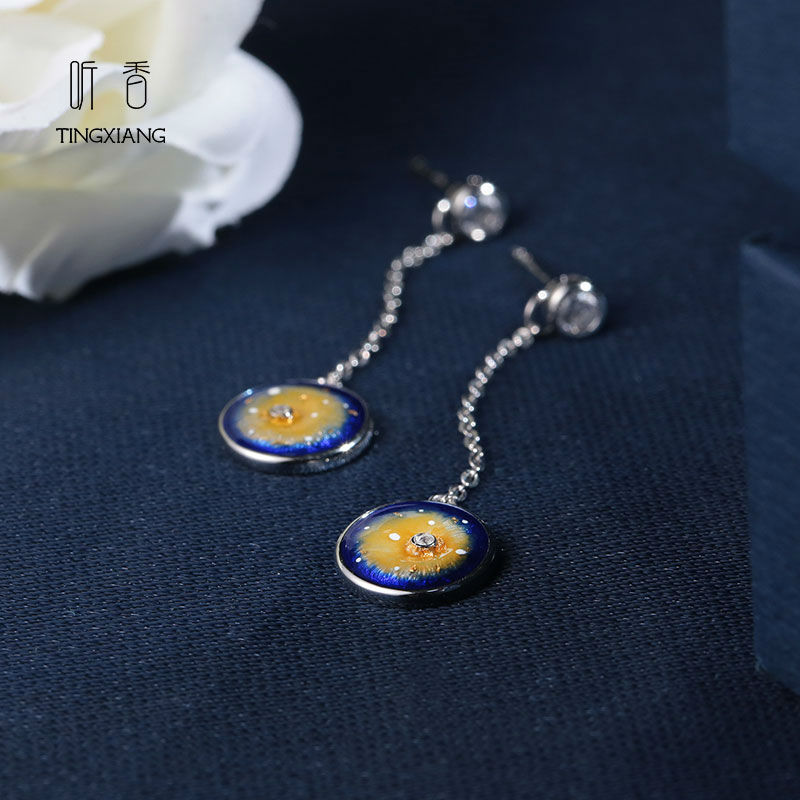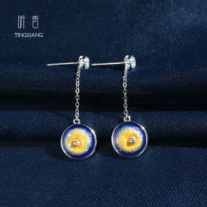 Inspired by the starring night, the design reflects the beauty of the star shining in the night sky. Fired with a low temperature with anti-cracking technology;It need to be filled with colored enamel and fired for several times until it comes into gradient effect. Zircons decorated to make the whole pictures more vivid.