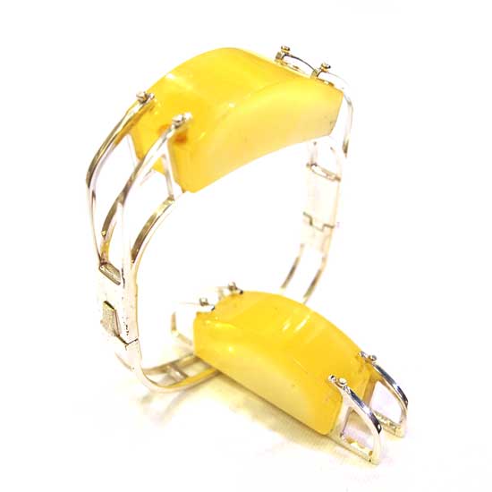 The dainty finger ring is set with enduring silver. It is embellished with a well-cut amber stone for added delicacy. This silver ring matches your elegant outfits nicely.