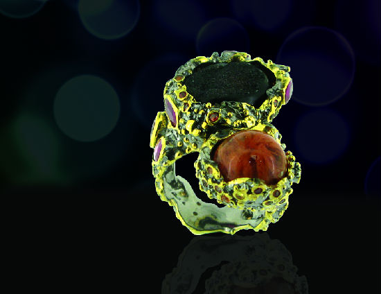 Chromed silver, rubies, druzy, agate