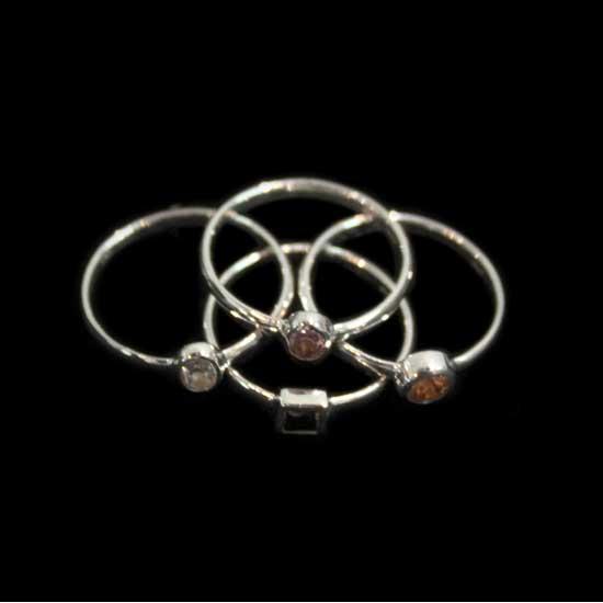 These delicate silver rings are adorned with round or square-cut CZ stones. The slim ring bands showcase a finely polished finish. The rings can maintain their style and beauty for a long time.