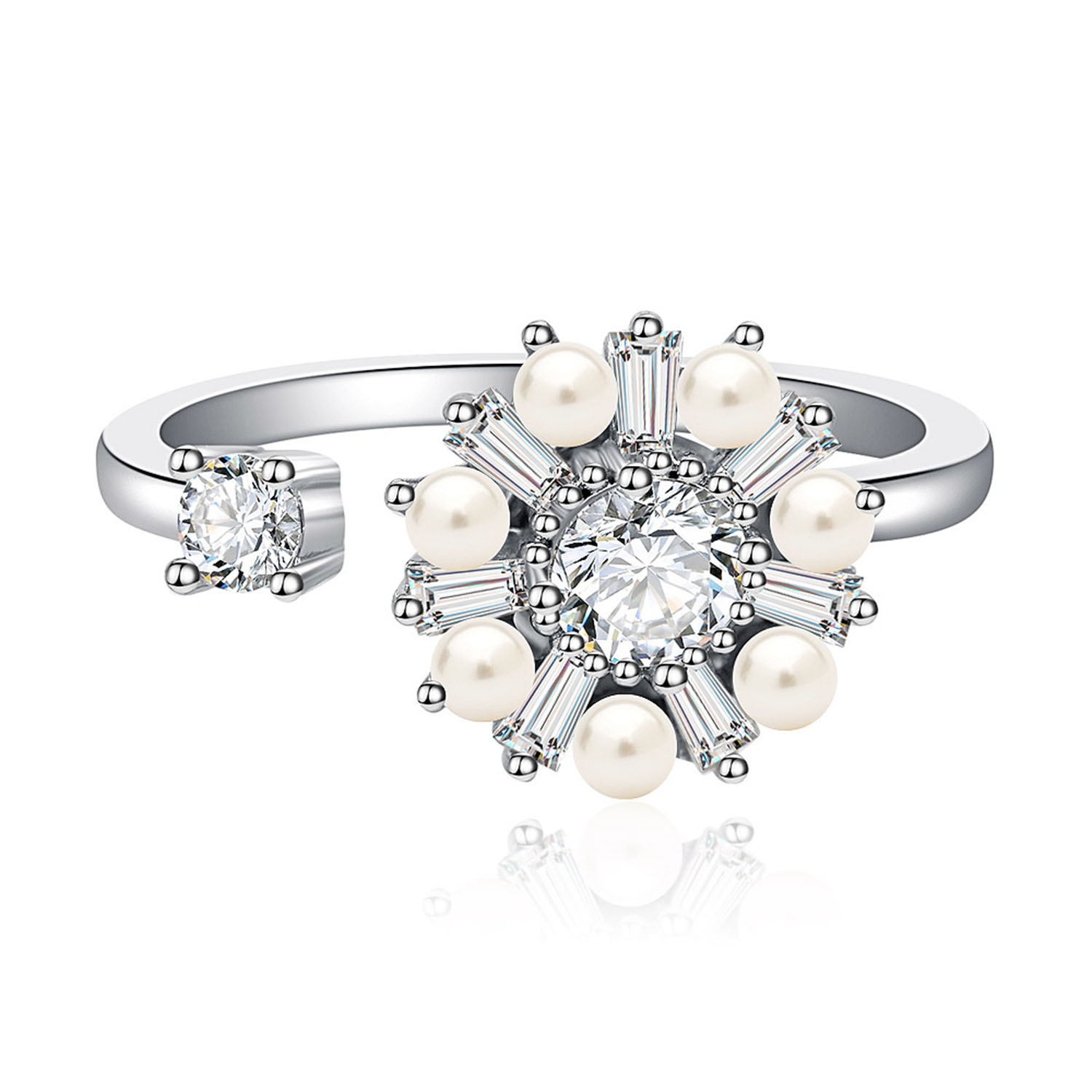 #CZ Round Cut Ring #Round Pearl CZ Ring #Pearl Spinning Ring