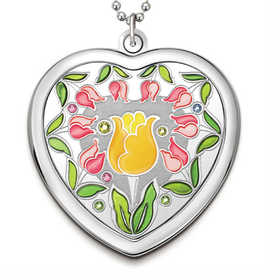 Enamel painted Tulips surrond Tulip design w/ color stones