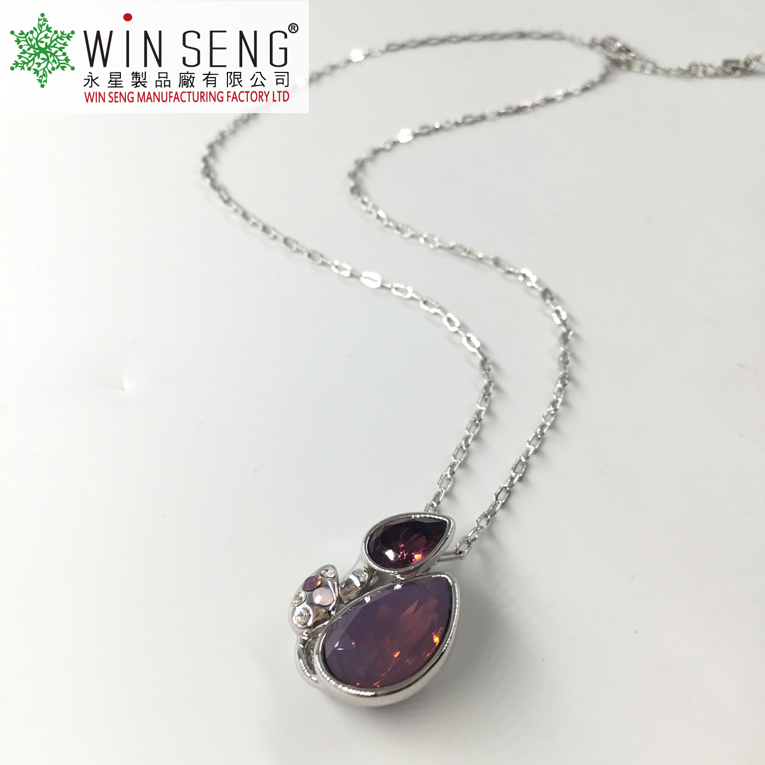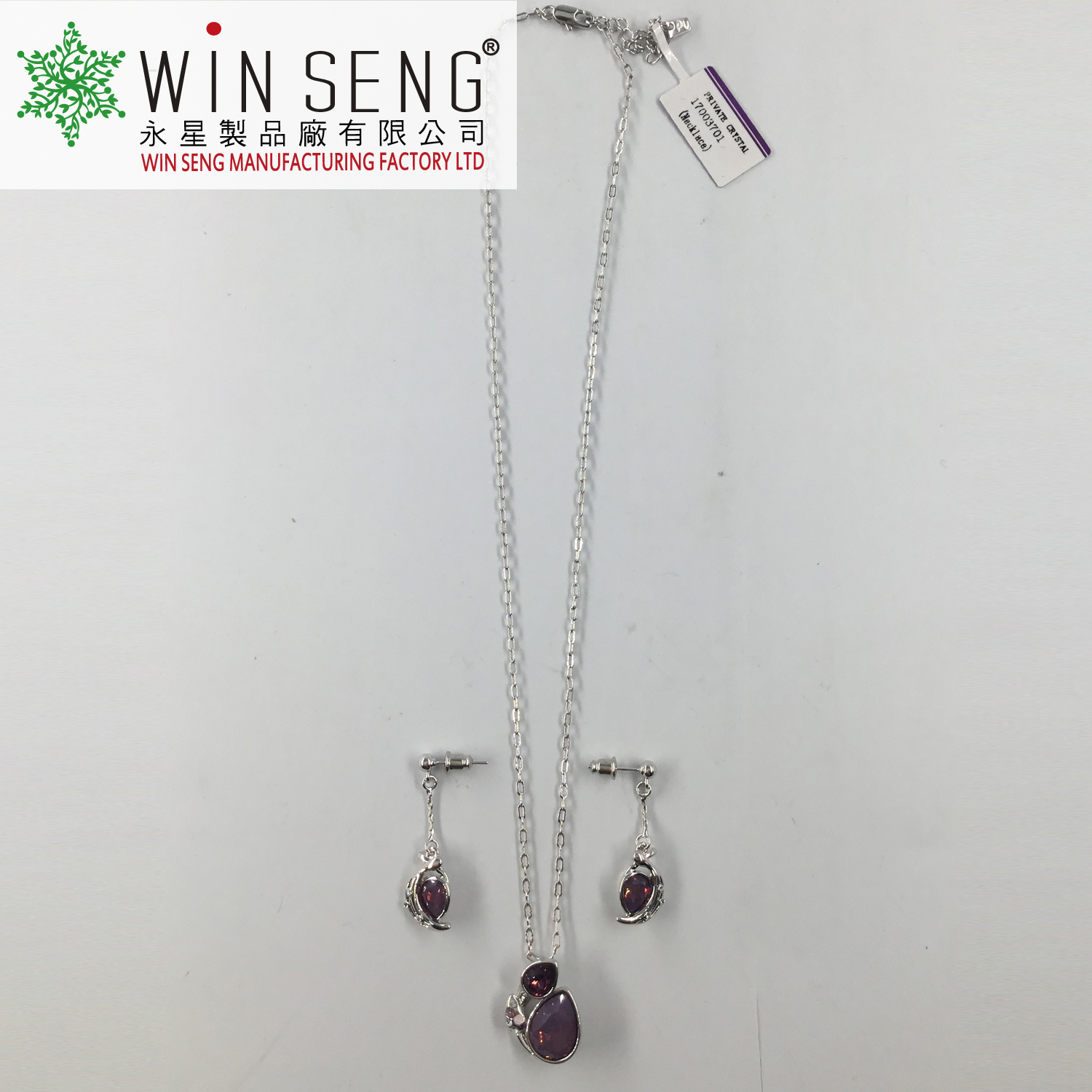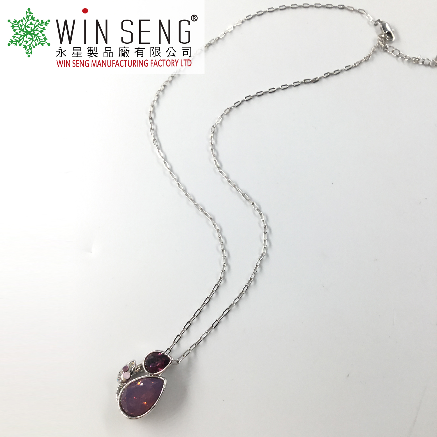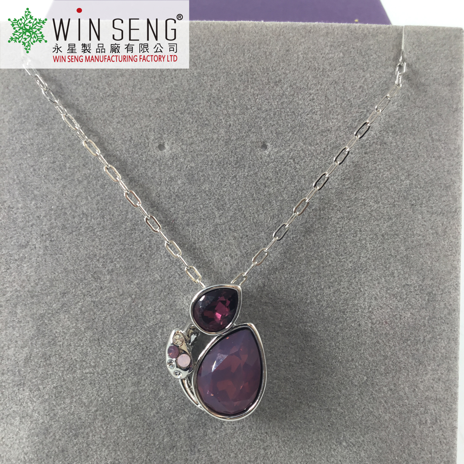 • Item Name: Silver two purple crystal water drop necklace