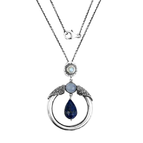 This necklace is extraordinarily graceful with its delicate design. The lustrous blue gems set in silver can fully complement your feminine look. This brilliant necklace can also be customized to suit your unique preference.