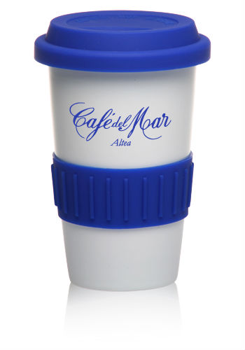 Single wall mug with silicone narrow grip around the mug for easy hold while leaves room for printing logo or message.
