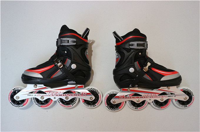 • PP Shell and PE toe 3mm EVA + 1.2mm PVC leather boot 8mm EPE lining + sandwich mesh 2.3mm 5 holes aluminum chassis with ABEC-11 bearing PU casting high rebound and hardness wheels wheel