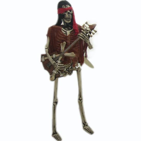 This eerie skeleton prop greets you with a cool skeleton guitar. Featuring a spooky and realistic appearance, this skeleton will certainly help set the mood for your Halloween party. The lightweight construction allows you to move it around with effortless ease.