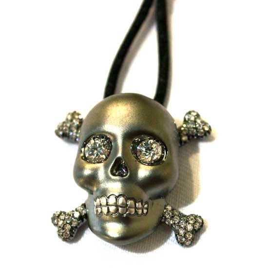 This pictured pendant comes with a stylish design of a skull. The skull is finely crafted with matt gold and gleaming diamonds. Show off your love for rock n’ roll with this edgy pendant.