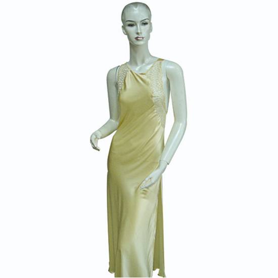 The sleeveless evening dress boasts embroidered details on the bodice for a sophisticated touch. The slightly flared hem offers flattering appeal. Look sophisticated and chic with this champagne sleeveless cocktail dress.