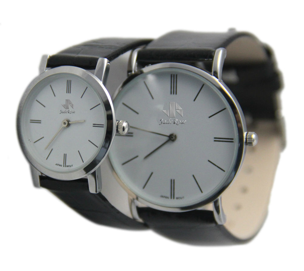 Alloy slim pair watches genuine leather strap 2 hands movt water proof