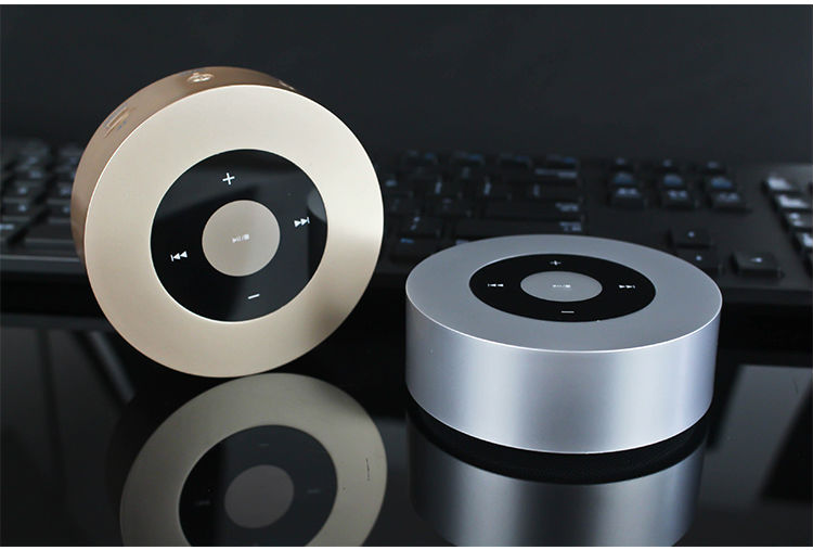 Key Features: Light compact and portable this Bluetooth speaker can fit in the palm of your hand, Aluminum painted in gold / silver design makes it durable and attractive to look at, Play music from Aux input, micro SD card or stream wirelessly with Bluetooth, 1000mAh rechargeable battery brings hours of play time from every charge.