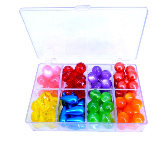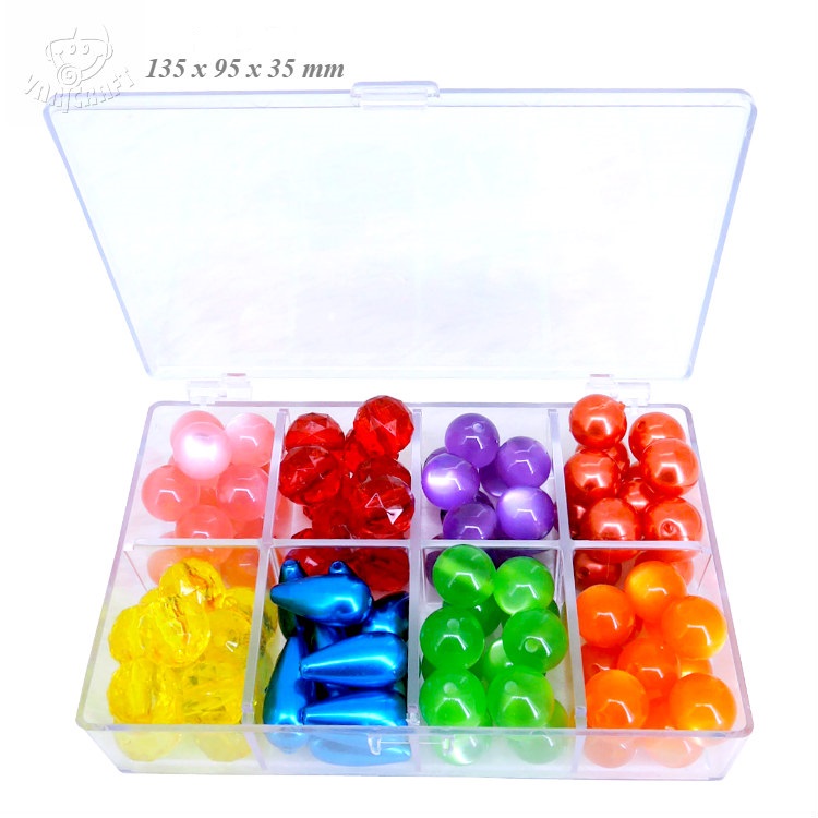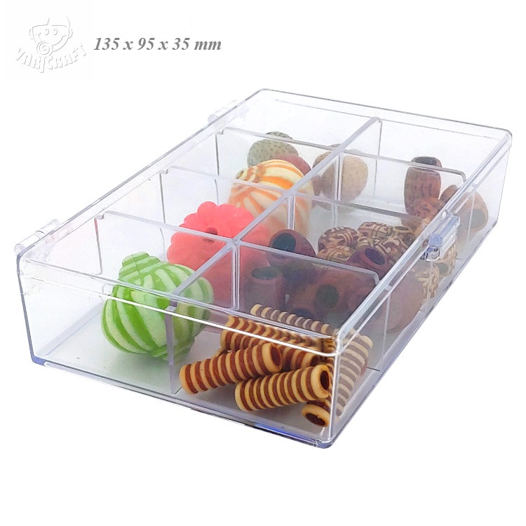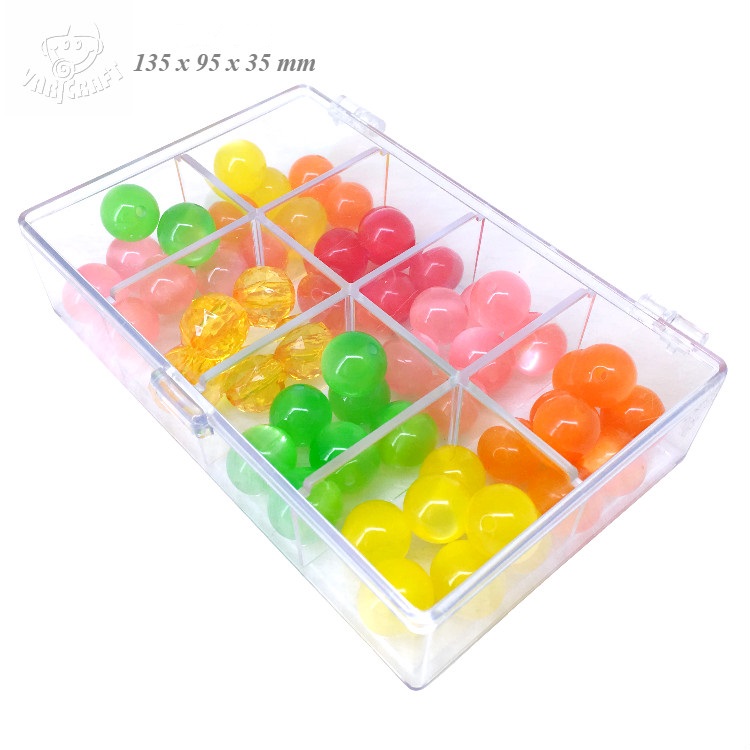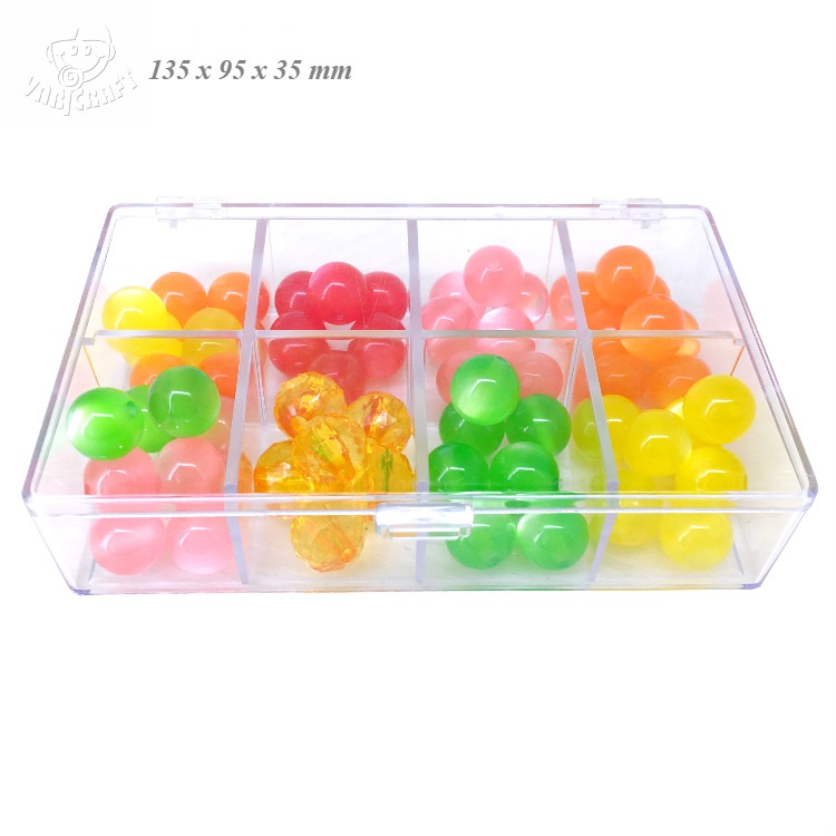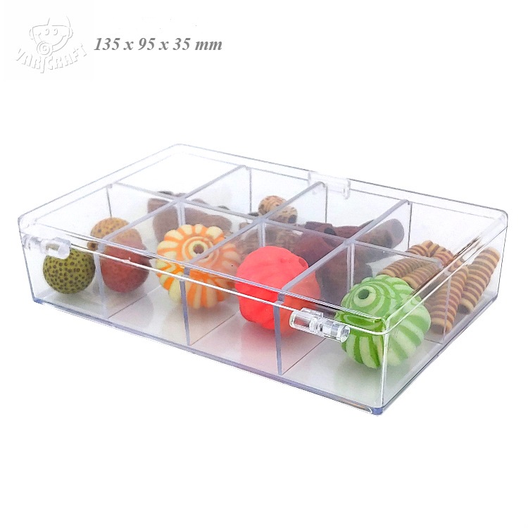 This transparent organizer box is divided into 8 partitions and has a high gloss, hard and smooth texture. It is made of food grade GPPS plastic and is safe for direct contact with non-oily candy or prepacked chocolates. The box can be printed with customers' designs and logos on the exterior and is ideal as advertising and promotional gifts and premiums.