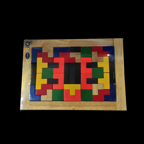 The tetris game here comes in a mini rectangular shape for carrying around. The game is made of natural wood and finely polished. The blocks come in sharp colors to draw children’s attention.