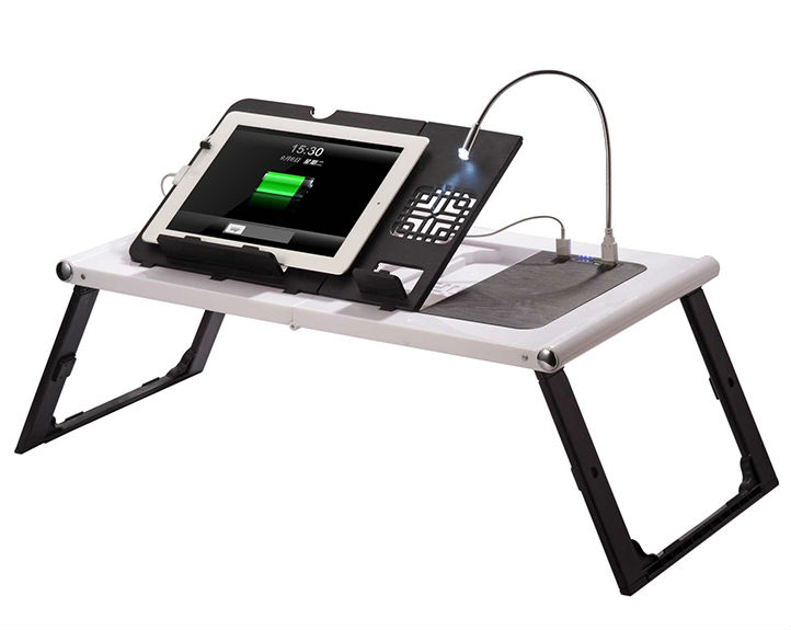 Get more productive in bed! The Laptop and Tablet Tray creates an instant workspace, with charging ports for your Smartphone or tablet.
