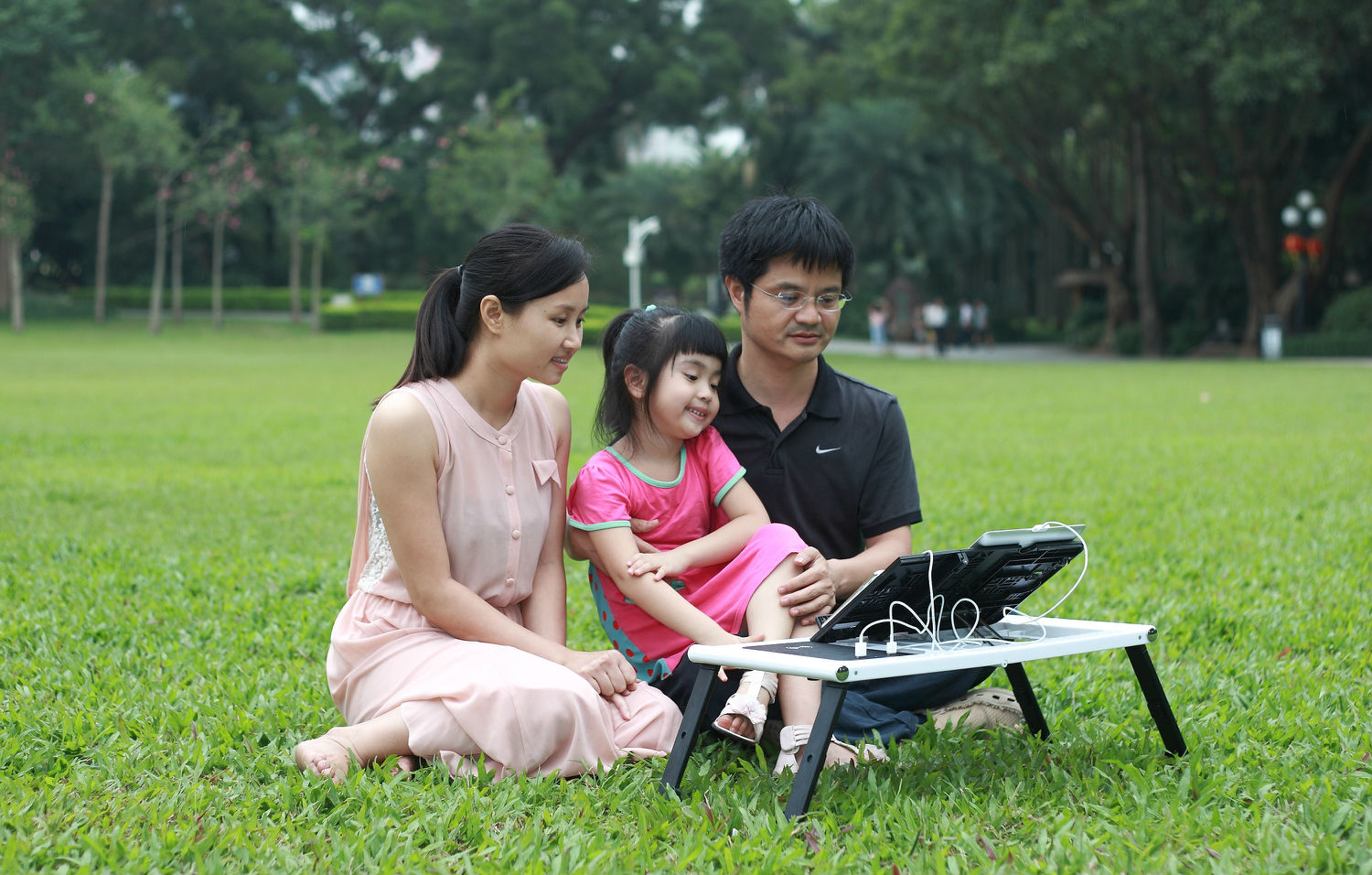This table creates an instant workspace, viewing stand and charging station that’s ideal for travel or home use. The table can be used while sitting in a chair or sitting up in bed. Its durable construction makes it well-suited for use outdoors as well. It is perfect for on the go. It’s a simple folding table that you can take with you just about anywhere. It folds to 13 x 11 inches so it’s sure to fit into your luggage. Since it’s foldable, it’s easily stored or transported. Plus, it has two USB ports to charge virtually all portable devices, including all iPhones, iPads, iPods, Galaxies and other Android devices. Equipped with a 10,000mAh battery, the table can charge a tablet and Smartphone simultaneously. The powerful 10,000 mAh battery provides up to 40 hours of additional talk time on your phone, or up to 8 hours of additional Internet time on your tablet.