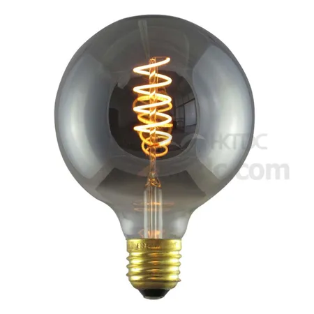 • A LED light bulb featuring an elegantly swirled filament housed in a glass bulb.