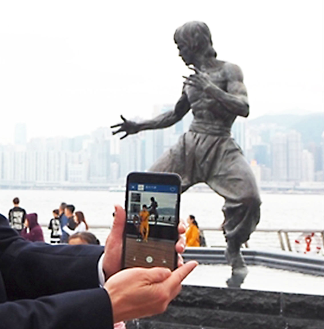 SnapPop is a crowd-sourced image search mobile app equipped with Augmented Reality technology to engage consumers in Offline-to-Online marketing. With SnapPop, customers can snap a picture of any printed marketing materials like packaging, flyer or poster, then a pop with multimedia content, such as AR game, lucky draw or product visualization will come up on their phones. This is the most intuitive and convenient way for customers to discover the benefits of your product! In Avenue of Stars, a major tourist attraction in Hong Kong, visitors can scan the Bruce Lee statue using the SnapPop app, and then Bruce Lee will come alive, via AR technologies, in front of your eyes, and you can pose with the fighting Bruce Lee.