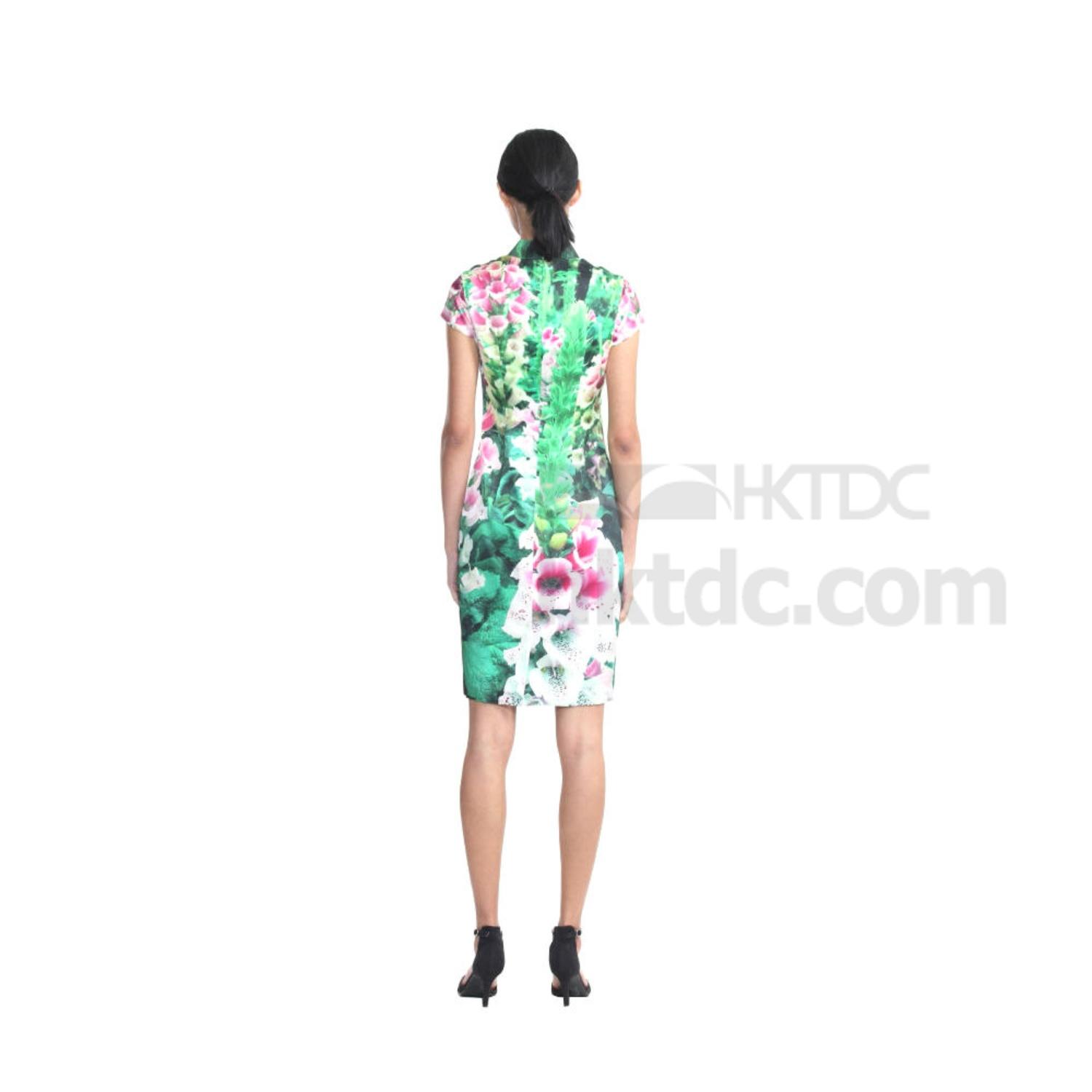 This printed silk qipao features snapdragon pattern. The mandarin collar and cap sleeves presents oriental beauty.