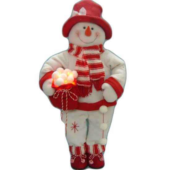 Displayed here is a snowman plush toy with a classic and precise look. The Christmas bag held by the snowman showcases a sense of uniqueness. This snowman plush toy is an ideal Christmas gift item for young children.