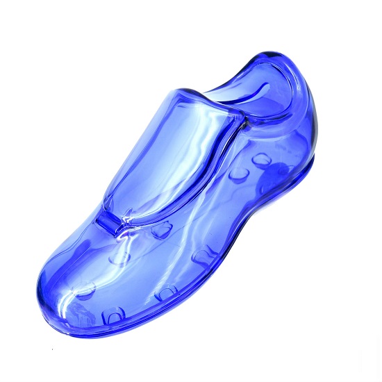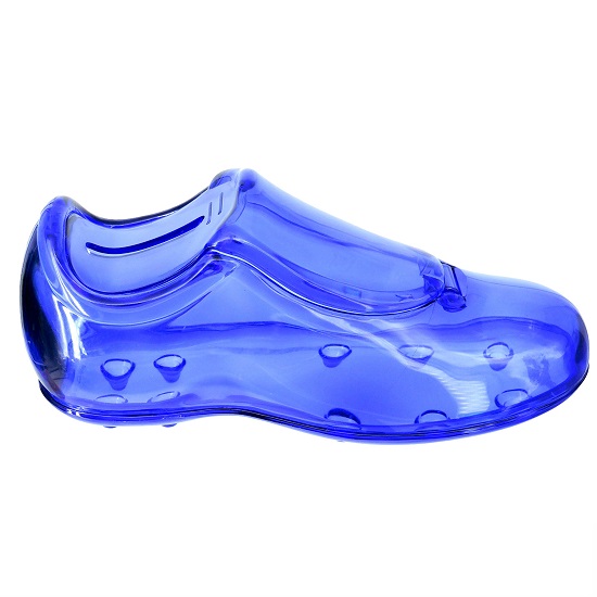 Save up your spare change with this soccer boot shaped container. It is made of GPPS material and has a tinted clear body with a coin slot on top. This coin bank has a hinged lid on the shoe tongue and offers easy access to the coins stored inside.
