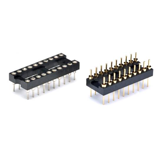 As shown are IC sockets and PGA sockets with pitches of 1.27mm, 1.778mm, 2.0mm and 2.54mm. The black insulator bodies of these sockets are filled with glass.