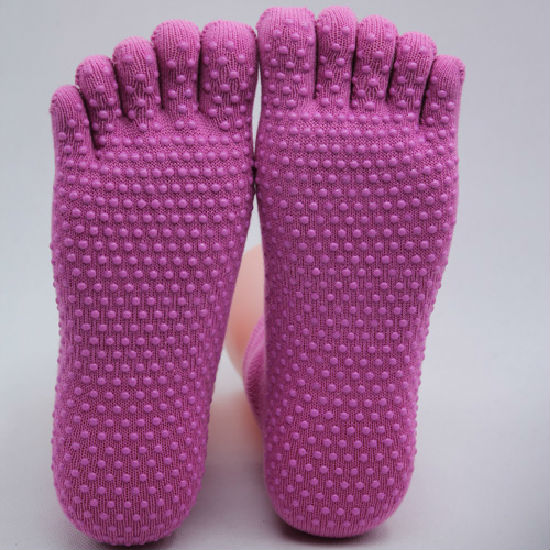 pink pvc dots non slip five toe yoga socks toe cotton socks