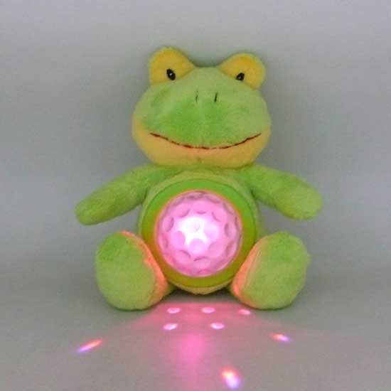 This soft cuddly frog is equipped with a night light on its belly. It projects star patterns on the walls of a kids' room with various colors and light effects. The lovely toy gives a sense of security, comfort and fun to your kid.