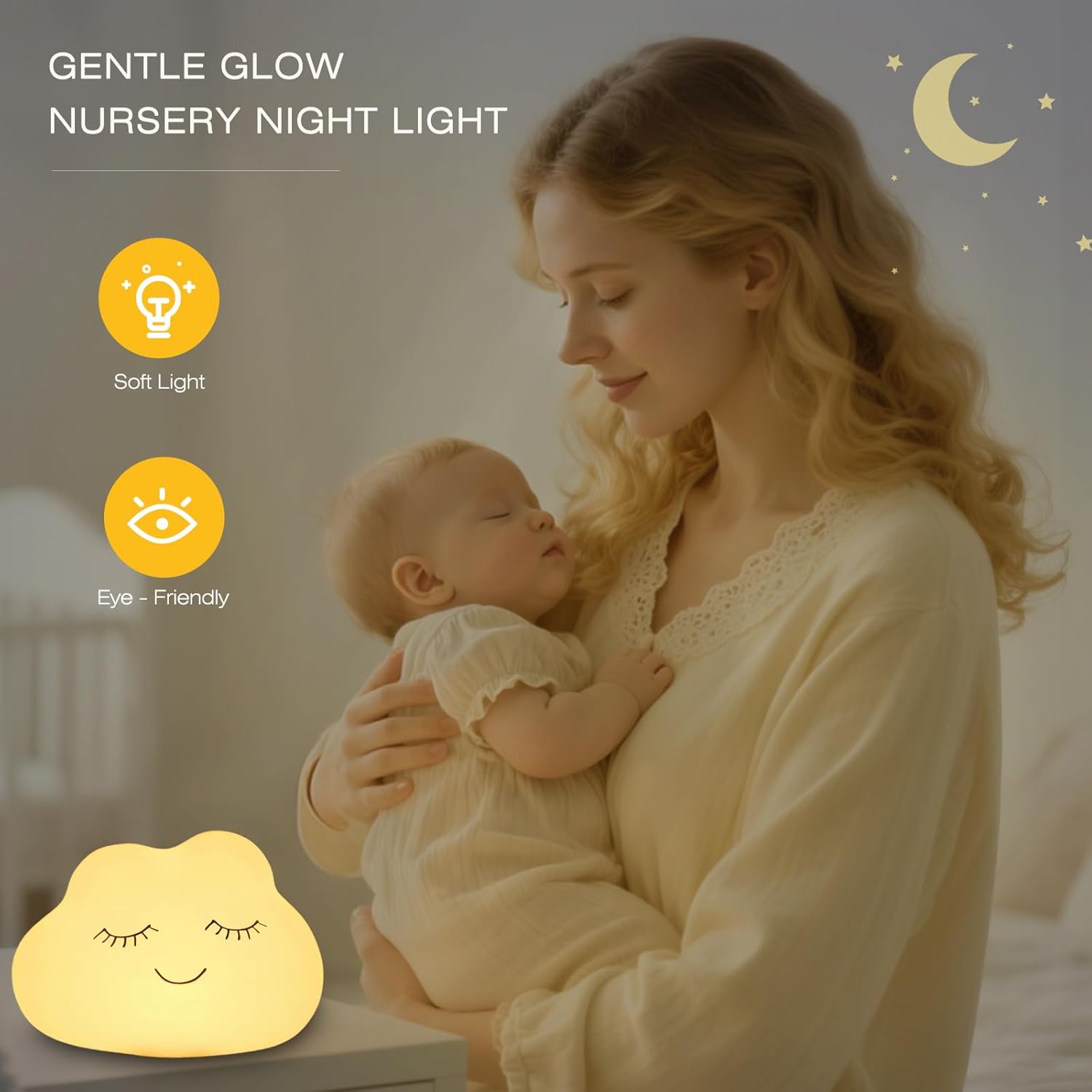 · Soft lighting for nighttime feeding or getting up