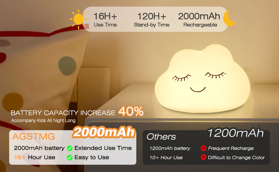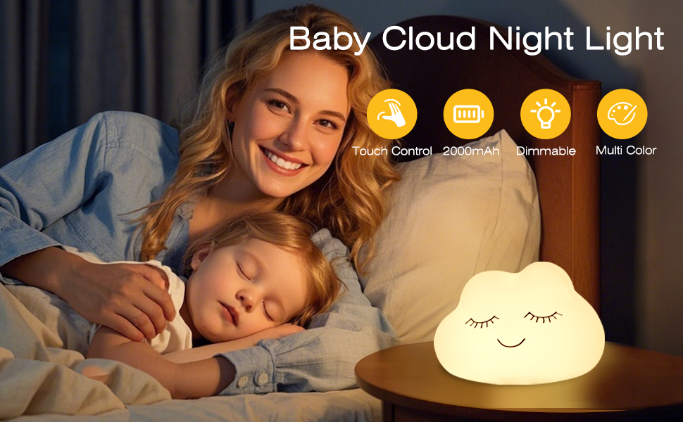 · Adorable Cloud Design: Cute cloud shape serves as both a practical night light and a charming desktop decoration.