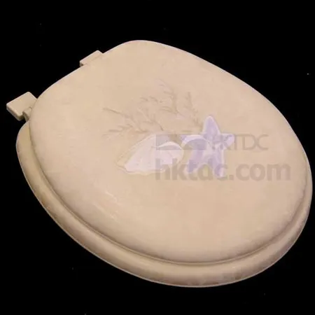 The toilet seat here is padded with soft sponge for comfortable use. The cover features nice embroidery to show a sense of elegance. The smooth plastic surface allows easy cleaning.