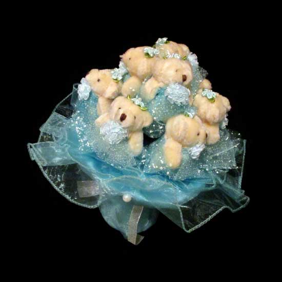 This is a soft toy banquet that consists of assorted cute bears and flowers. It is well packed in exquisite tulle packaging materials. This beautiful soft toy bouquet is an ideal choice as a birthday present.