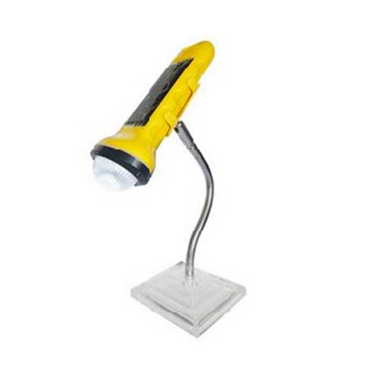 Featured is a desk lamp with an attachable lamp head. The lamp head can function as a solar torch by itself. The gooseneck design allows user to adjust the lighting angles according to needs.