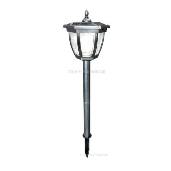 Shown here is a solar garden lamp powered by 2 x 1.5V Grandcell solar batteries. Since no wiring is required, it ensures convenient installation and enhanced flexibility. Powered by 2 super bright white LEDs, illuminate the garden with this elegant solar garden lamp.