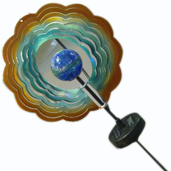 This solar garden light has a globe model in the middle for increasing its uniqueness. The swirl-like outer layer also adds more style with its colorful and interchangeable LED lights. This rotational light is very suitable to be a decorative light in your garden.