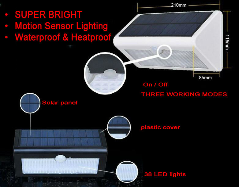 SUPER BRIGHT—The outdoor solar lights adopt 38pcs LED, providing a excellent illumination up to 400lumens. This is bright enough to see everything at night and offer security and safety protection for your home.