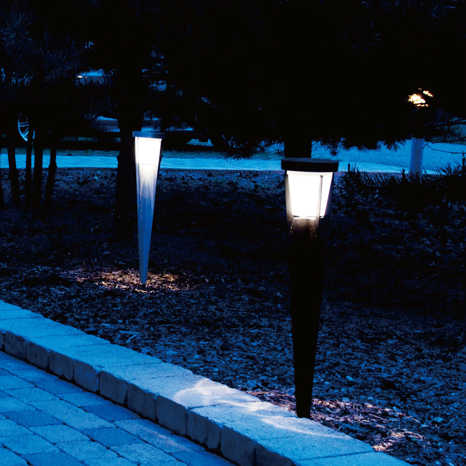 Brighten up the walkway with this solar light. Boasting an IP44 construction, the die-cast aluminium light guarantees to perform gratifyingly under the bad weather. Gathering up sunlight via the built-in solar panel at daytime, it transfers them automatically into solar energy to power up the LED bulbs all night long.