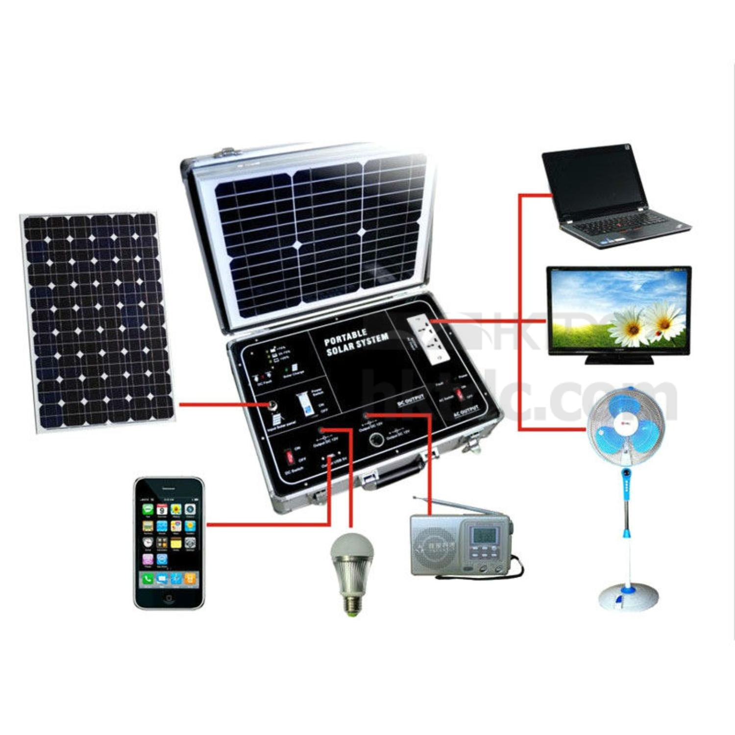 Built-in PWM charge controller,12V/20A battery( maintenance free), 500w inverter, 34W/17.5V Solar panel.