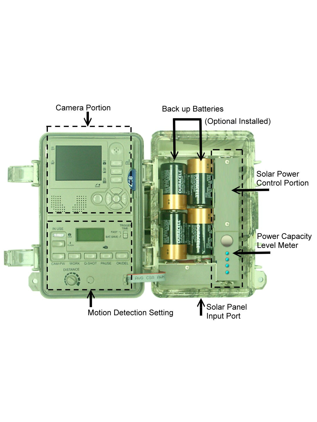 Compact 3 in 1 Solar powered Hunting /Time Lapse IR Camera with 8M Image /720P Video is ideal for using endless Green Energy in wild field. Come with a high conversion efficiency polycrystalline solar panel, just plug it conveniently to camera without other extra connections.