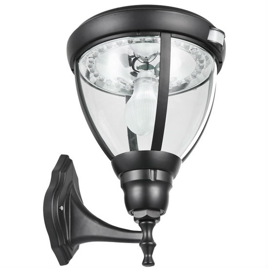 Charming solar sconce as an environmentally-friendly wall light for different environments.