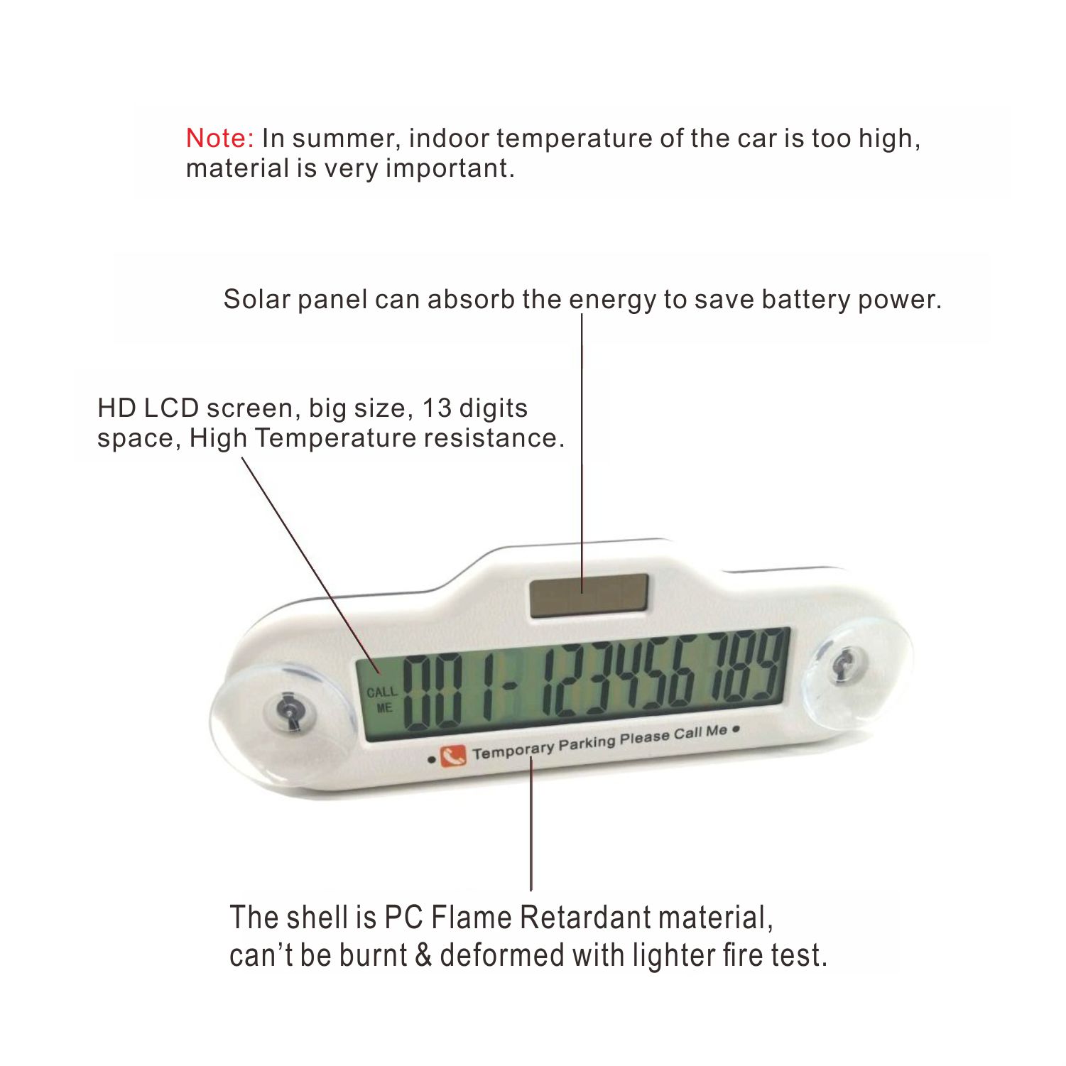 All of parts are High temperature Resistance---In Summer, indoor temperature of the car is up to 70℃.