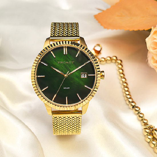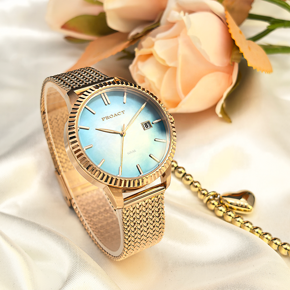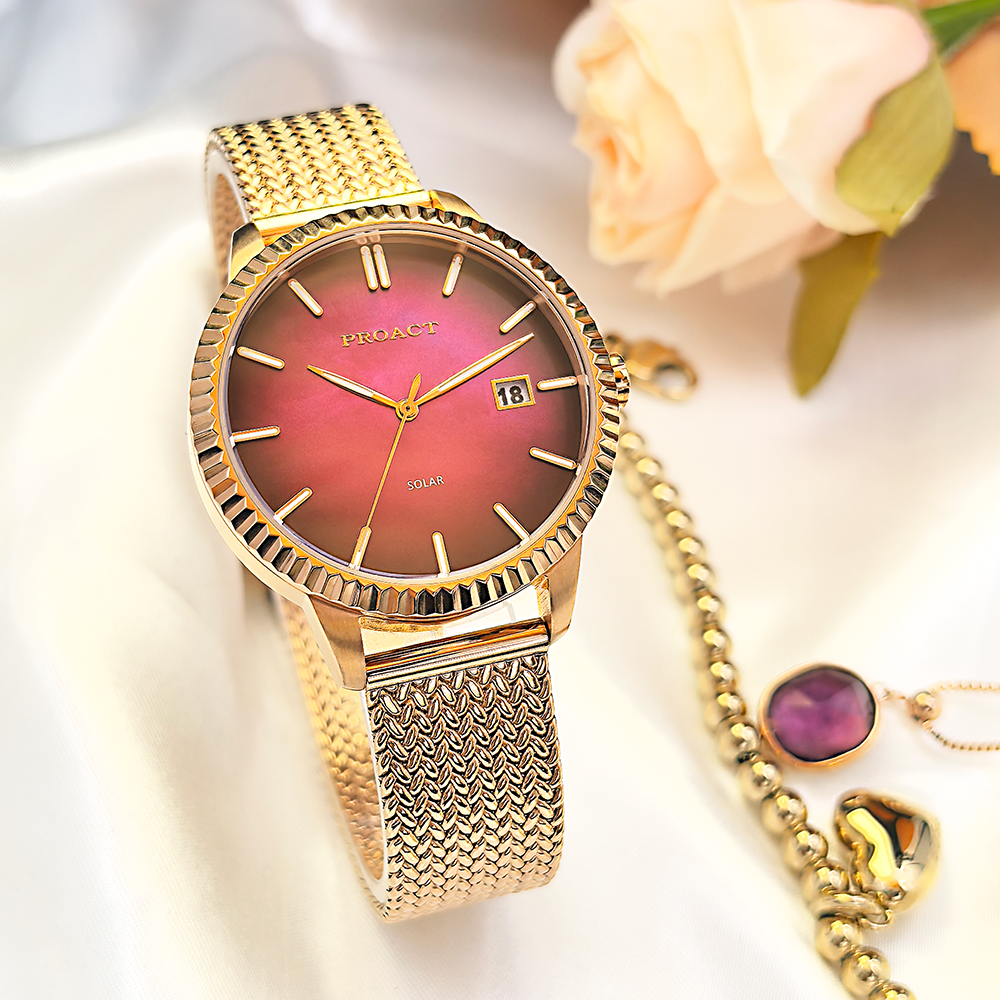 MOP dial, mesh strap,Water-resistant up to 5 ATM.