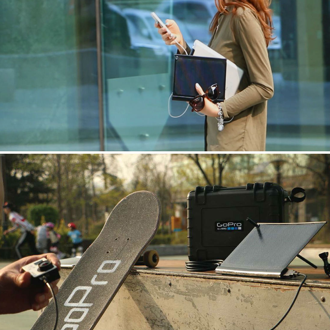Being the world's smallest solar charger, this item weighs only 200 g for easy transport. It can fully charge an iPhone 5 in 2 hours, which is similar to regular wall chargers. It powers any device via a USB cable and the advanced mono-crystalline solar panel.