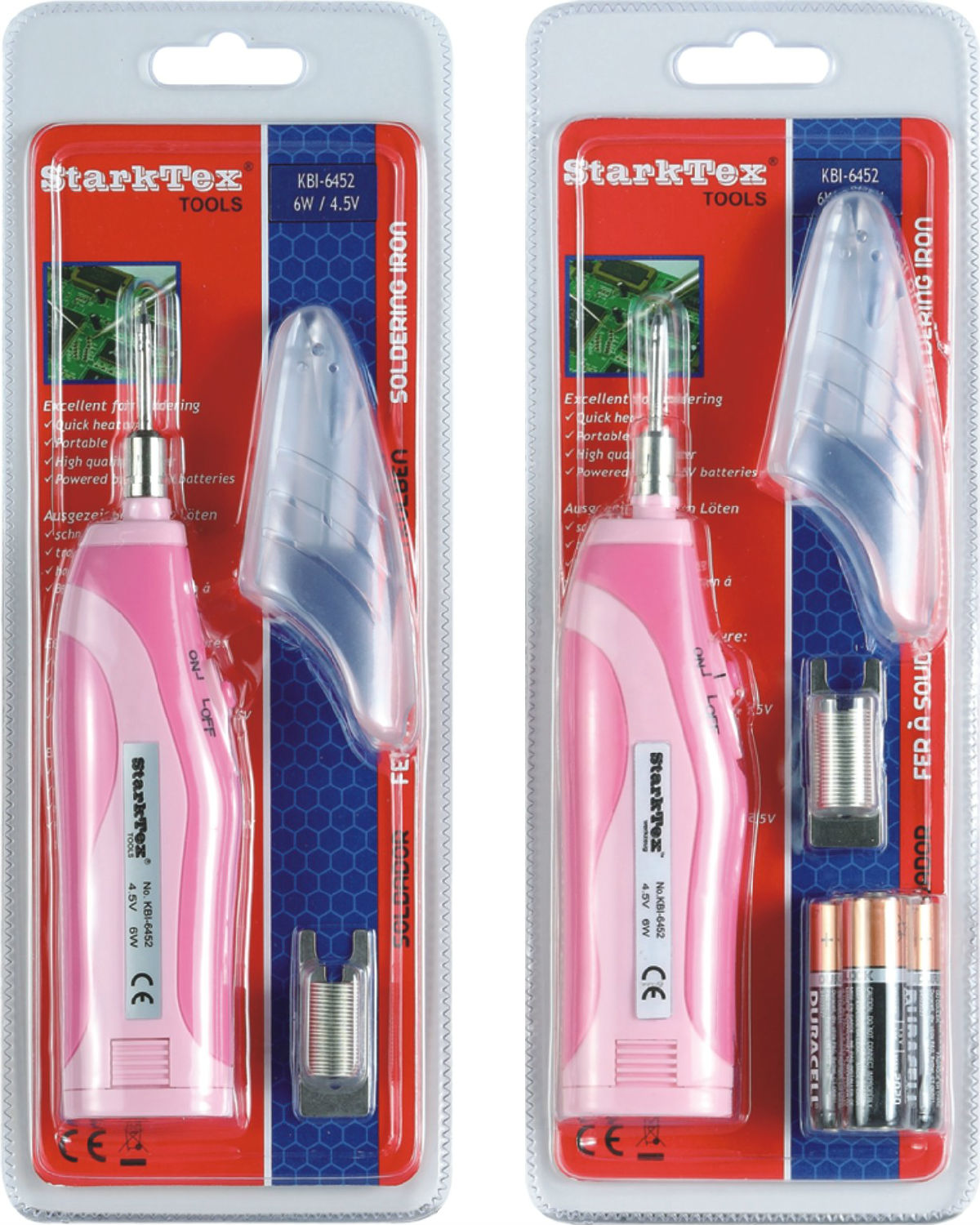 - 6W/4.5V 3xAA battery operated soldering iron.